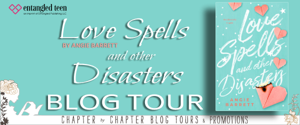 Hi everyone! Welcome to my stop on the book tour for Love Spells and Other Disasters by Angie Barrett hosted by Chapter by Chapter book tours! This was a cute YA romance so be sure to keep reading for my review and be sure to add this to your TBR! There is a giveaway opportunity as well at the end 🙂